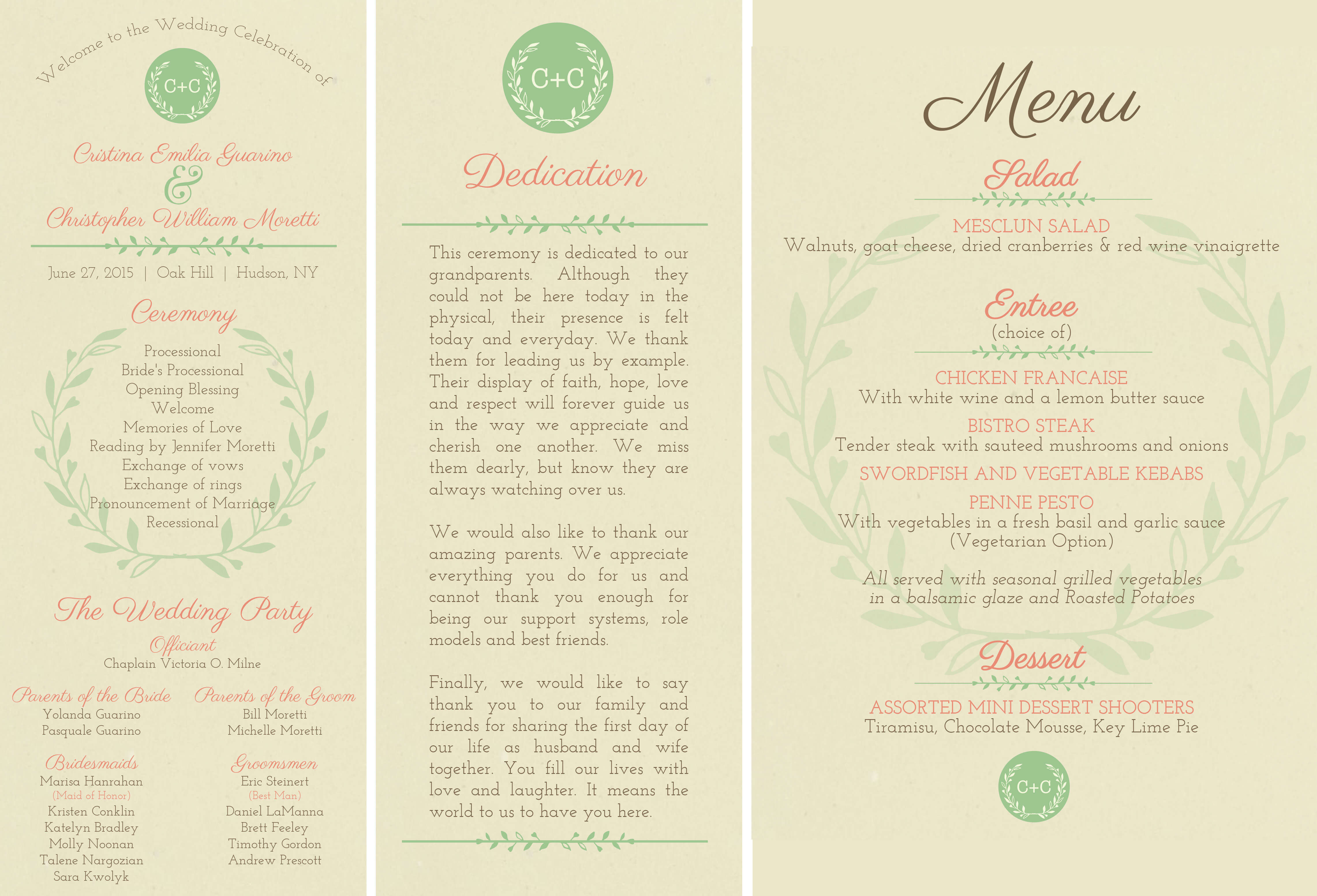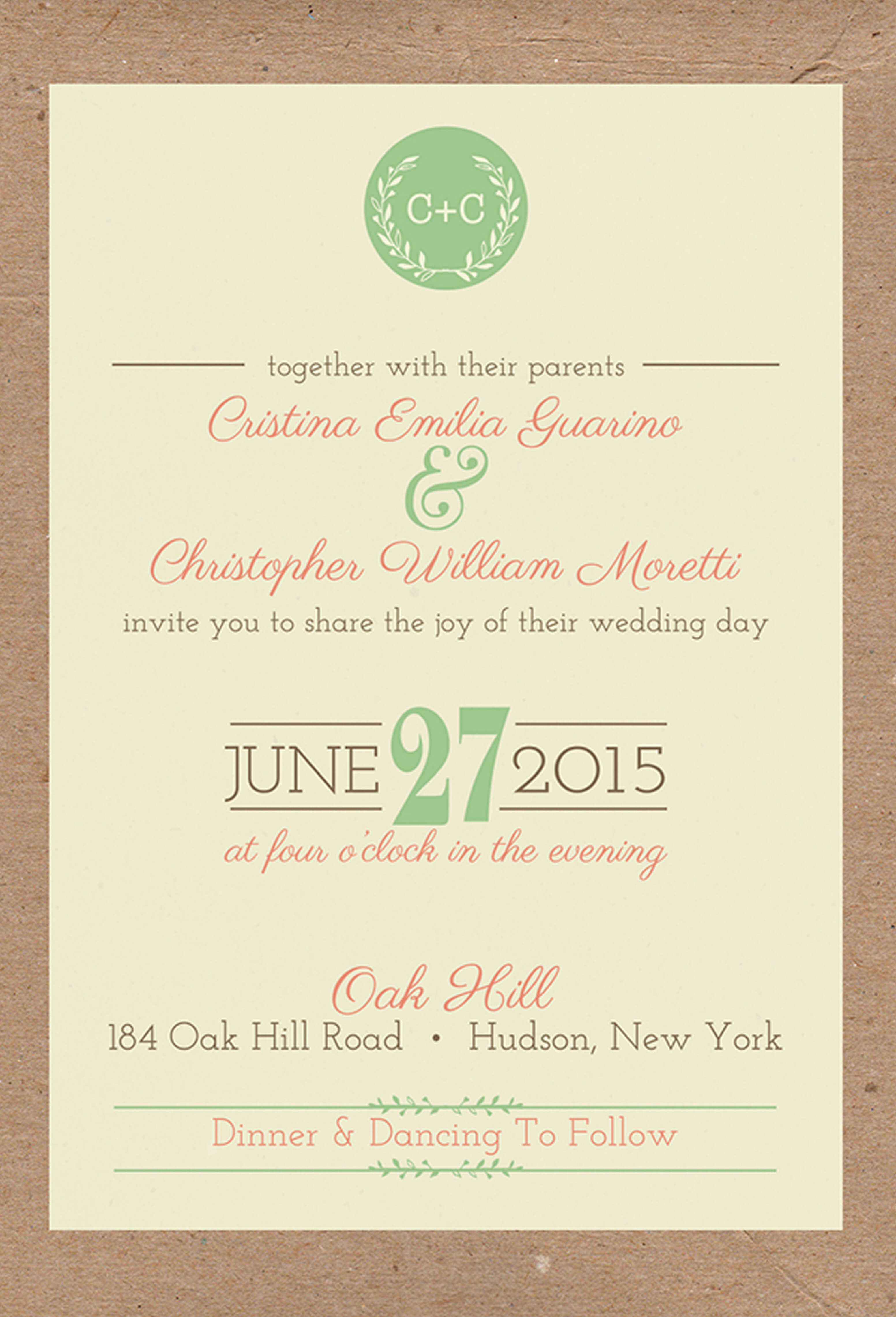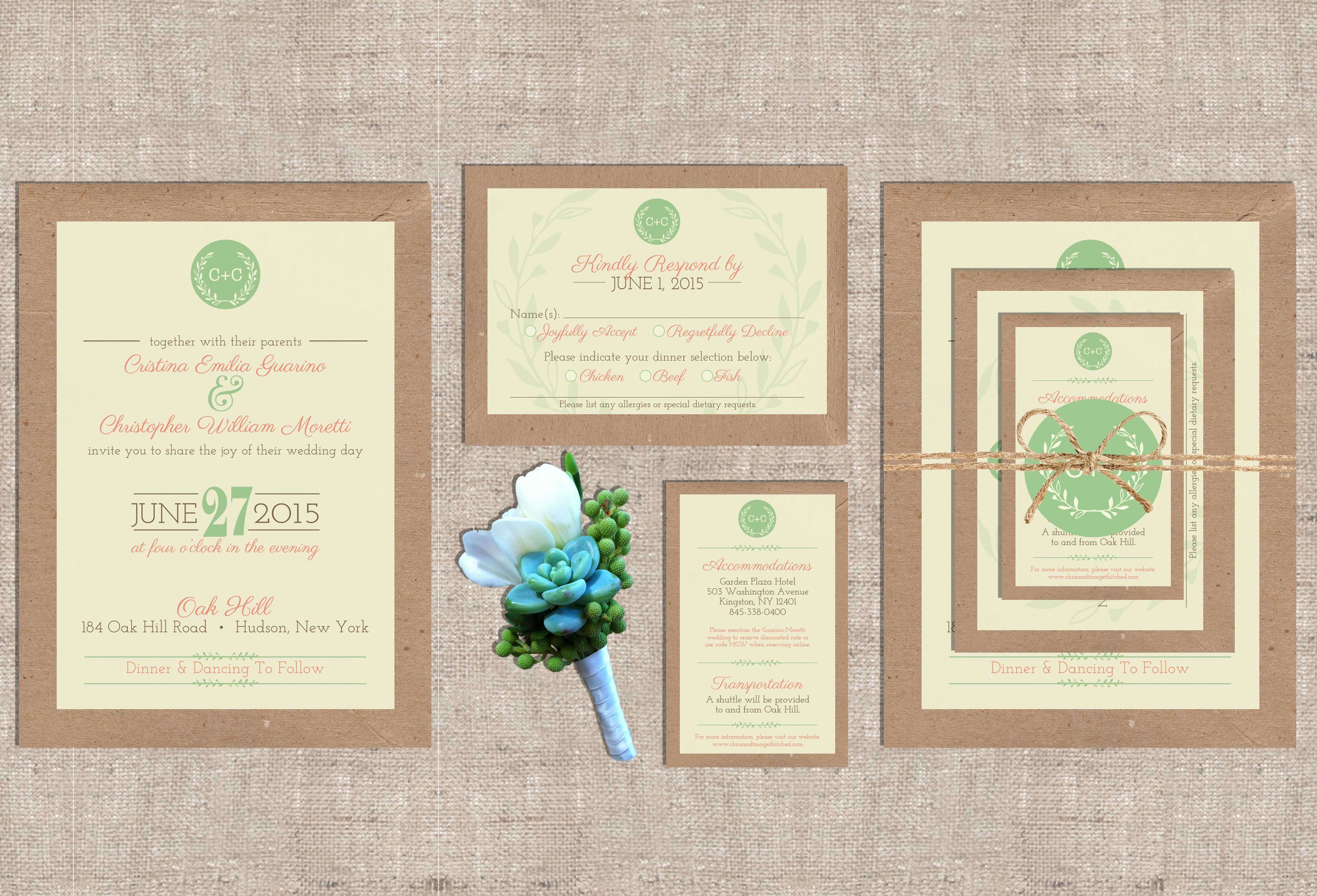 Tina and Chris came to me looking for rustic invitations that would incorporate their wedding colors and have a cohesive flow from their stationary to their table menus. We worked together to find a balance of rustic romance and simple typography to create a wedding suite that complimented their beautiful day.